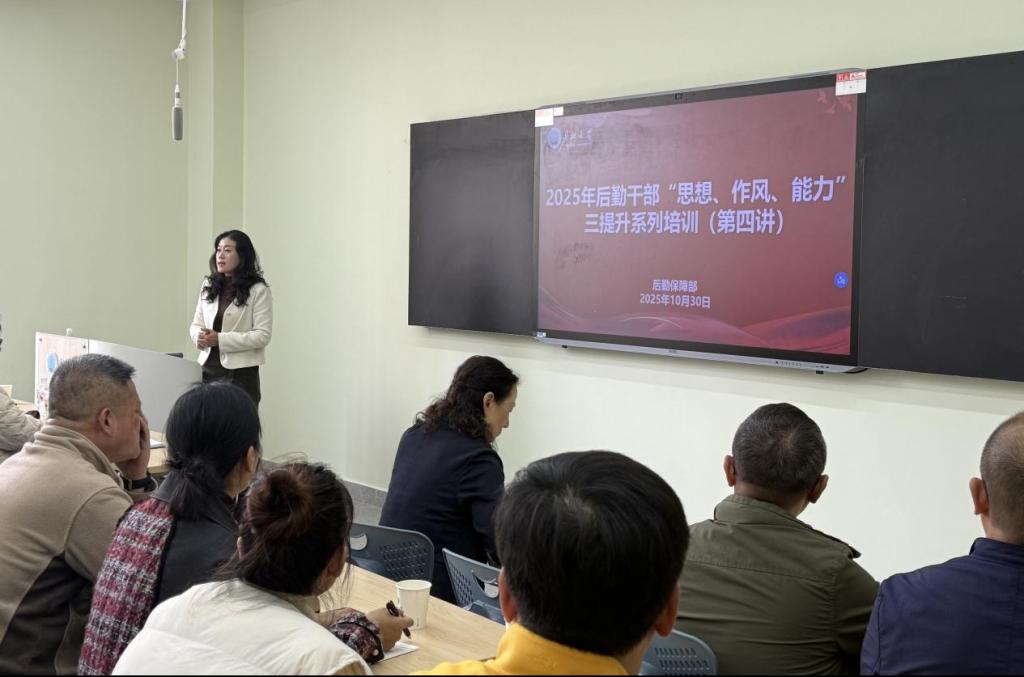 本网讯(通讯员 张丽娜)10月30日下午,后勤服务集团在16教-A区-103教室成功举办了“三提升”培训系列活动的第四讲。本次讲座特别邀请了荆州市接待中心的科长王霞同志,集团领导班子成员、全体科级干部以及负责会务接待的各中心科室相关人员参加了此次培训。会议由集团副总经理田华主持。
