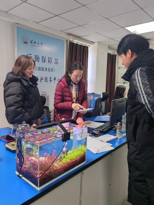 姜清奎、邓平、江伟一行12月4日深入学生宿舍体验维修工作,实地查看了宿舍内故障报修处理全流程。并指出,在规范出入库方面,还要做实做细,对反复出现的故障点进行专项排查,从根源上提升维修服务的可靠性,切实保障学生的居住安全与生活便利。