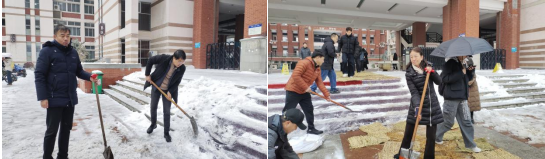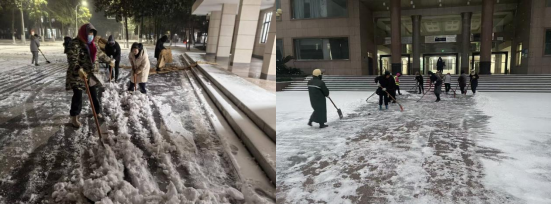 风雪就是命令!许锋率先垂范,在学生考试楼前清雪除冰。各部门协同作战,全力守护师生出行安全,凝聚起抗击寒潮的强大合力。从深夜巡查到清晨扫雪,从防冻抢修到暖心服务,每一个后勤人都以自己的方式守护着校园的温暖。