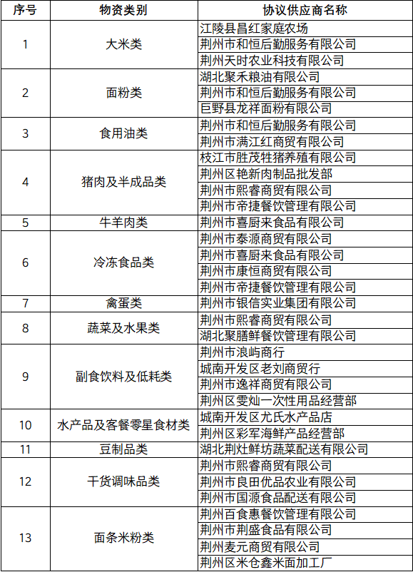 经评议组成员集中评议,以下28家协议供应商报价材料规范、品种齐全,符合饮食服务中心规定的供货条件,确定为饮食服务中心2025年10月份指定供货商。现公告如下: