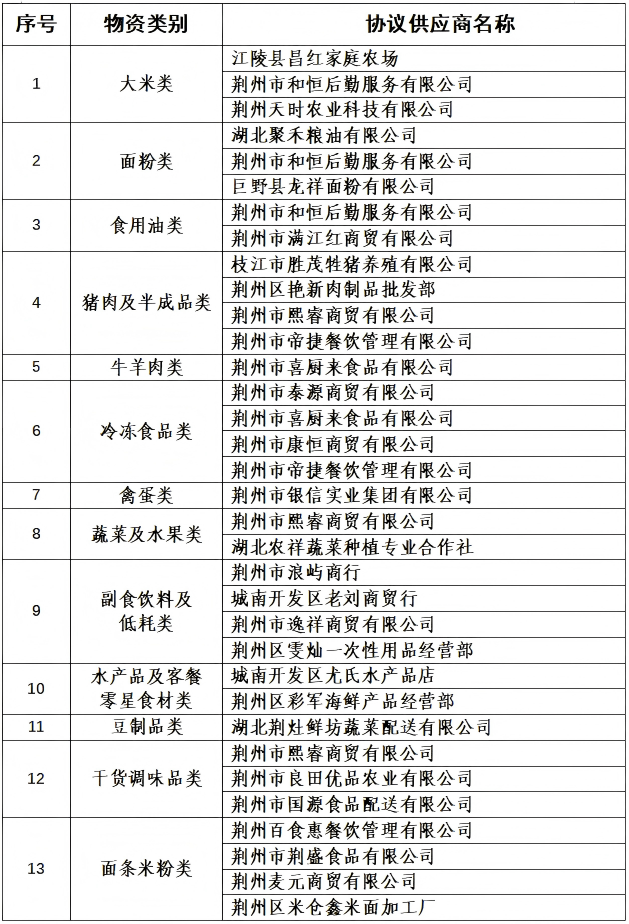 经评议组成员集中评议,以下28家协议供应商报价材料规范、品种齐全,符合饮食服务中心规定的供货条件,确定为饮食服务中心2026年4月份指定供货商。现公告如下:
