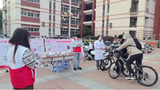 本网讯(通讯员 宋良)近期,国家疾病防控中心发起一项公益活动,向5个省份的全体高校寄送了《传染病防治知识手册》和《给大学生的一封信》,希望通过该活动的开展,向广大高校学生普及肺结核、艾滋病、HPV等常见传染病的预防知识。校医院接到宣传任务后,通过前期与学校学工部门的积极沟通,于2025年12月16日,采取线上与线下方式相结合的方式,分别在东校区13号教学楼和西校区7号教学楼的楼前广场,开展了一次传染病防治的宣传活动,并将《传染病防治知识手册》和《给大学生的一封信》分发给参与本次活动的学生。