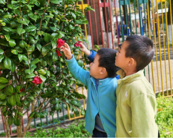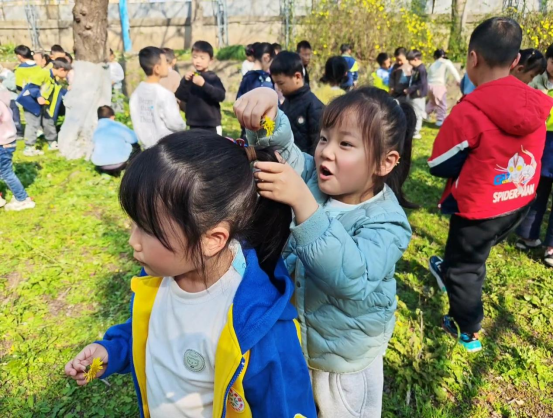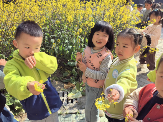 小班和中班的小朋友们则在幼儿园里寻觅春的踪影。他们在草丛间发现嫩绿的小草,在花坛边惊喜地指认盛开的花朵,欢声笑语回荡在园所的每个角落。